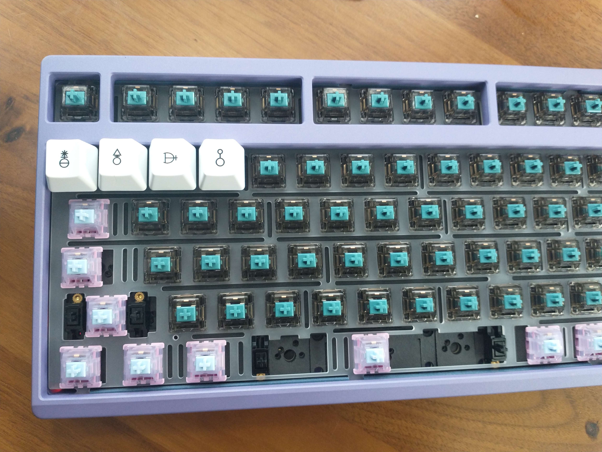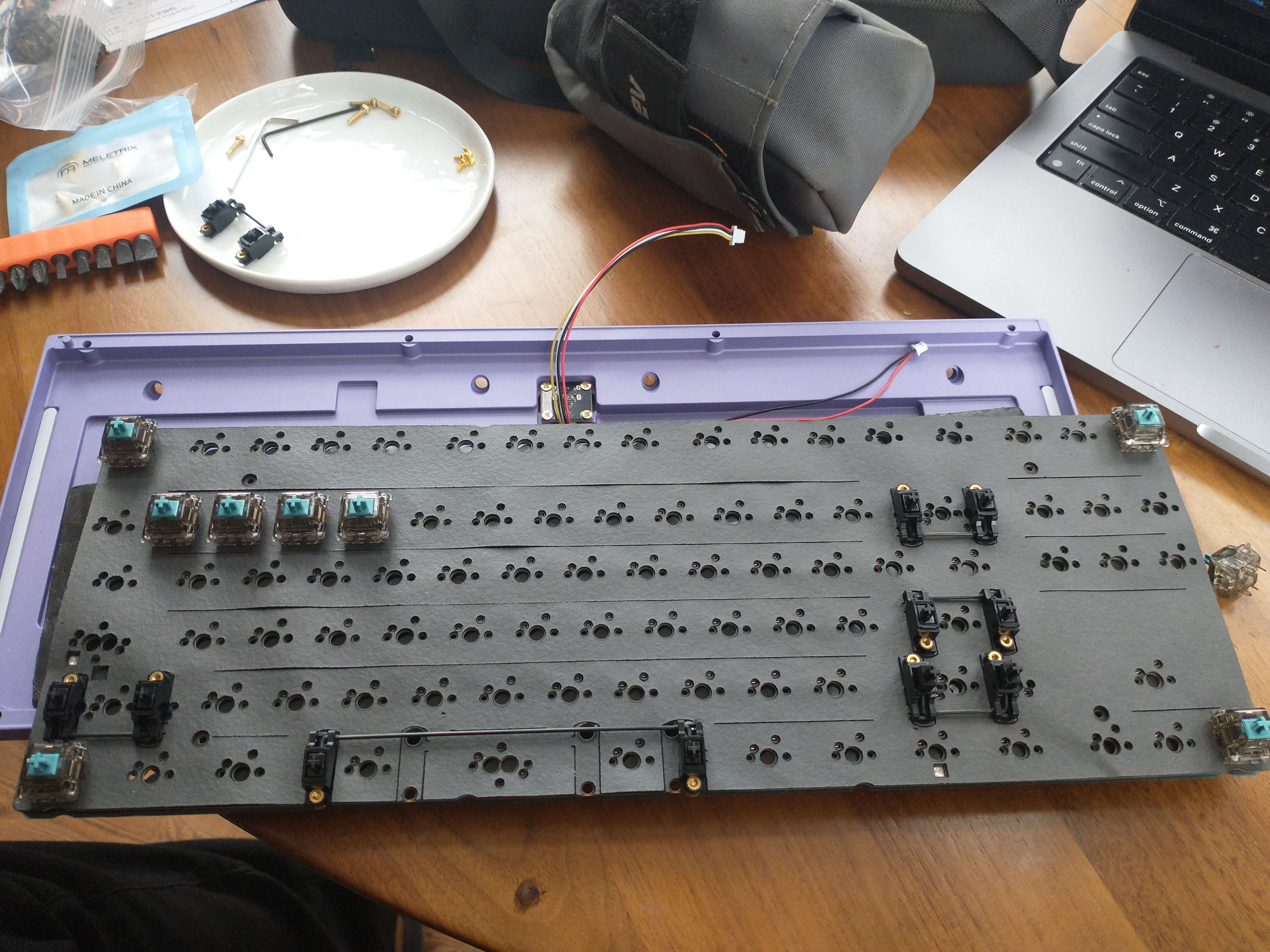 I then ordered a kit from China, which was unassembled but had all the parts except the actual keys (no switches, no caps). This particular one is called Zoom TKL in the lilac color.